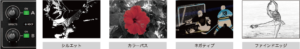 エフェクト:ネガ、エンボス、カラライズ、カラーパス、ポスタライズ、シルエット、モノカラー、ファインドエッジ、フリップ、ルミナンスキー(WHITE)、ルミナンスキー(BLACK)、クロマキー(GREEN)、クロマキー(BLUE)、PinP(1/4)、PinP(1/3)、PinP(1/2)、SPLIT(H-STRETCH)、SPLIT(H-CENTER)、SPLIT(V-STRETCH)、SPLIT(V-CENTER)