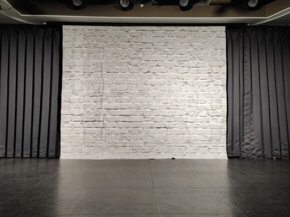 レンガ柄のシートもお貸し出し可能トークショー や 朗読劇シーンの撮影に